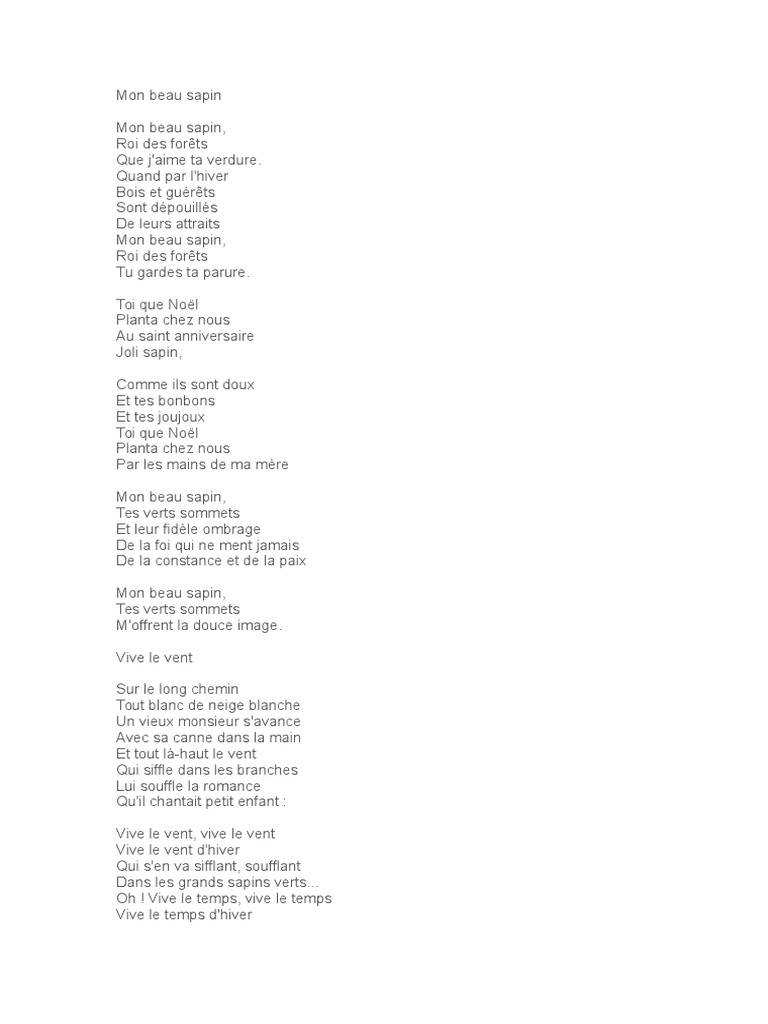 Cantece Versuri Mon Beau Sapin Wattpad