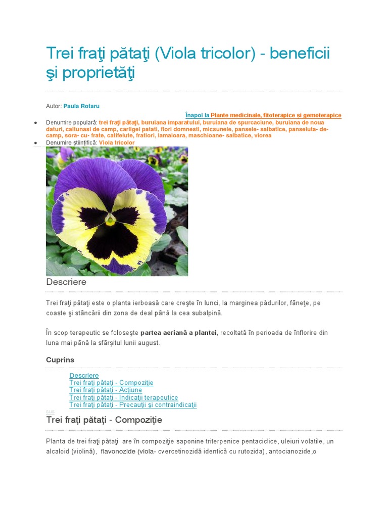 Trei Frati Patati Proprietati Beneficii Mod De Utilizare Contraindicatii
